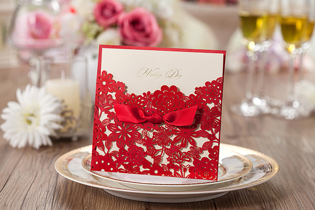 費用包括:廠商信封地址燙金/內頁單頁燙金或雙頁彩色印刷(婚紗照或圖案)/紅色雷射雕刻外框/貼紙