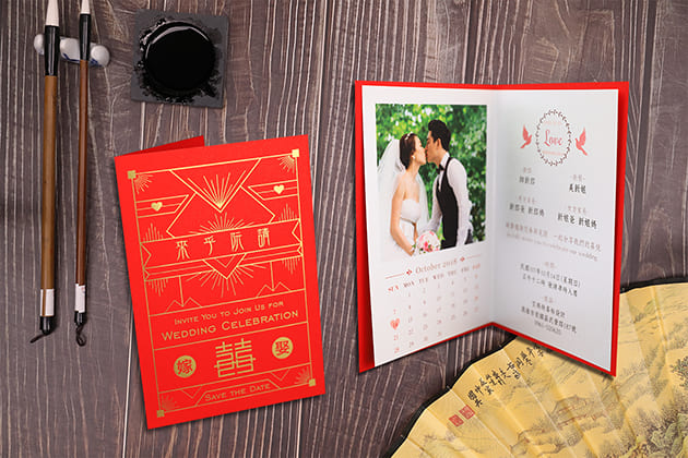 PTW02 嫁娶(印刷) | 艾瑪特Q版喜帖設計--傳統燙金工藝結合現代印刷 / 歐風喜帖14元起
